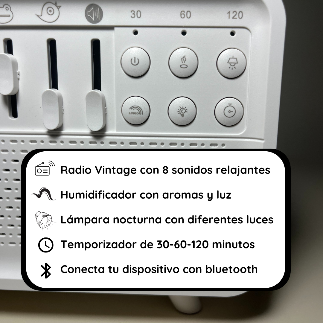 Radio Vintage Relajante con Humidificador y Sonidos Naturales